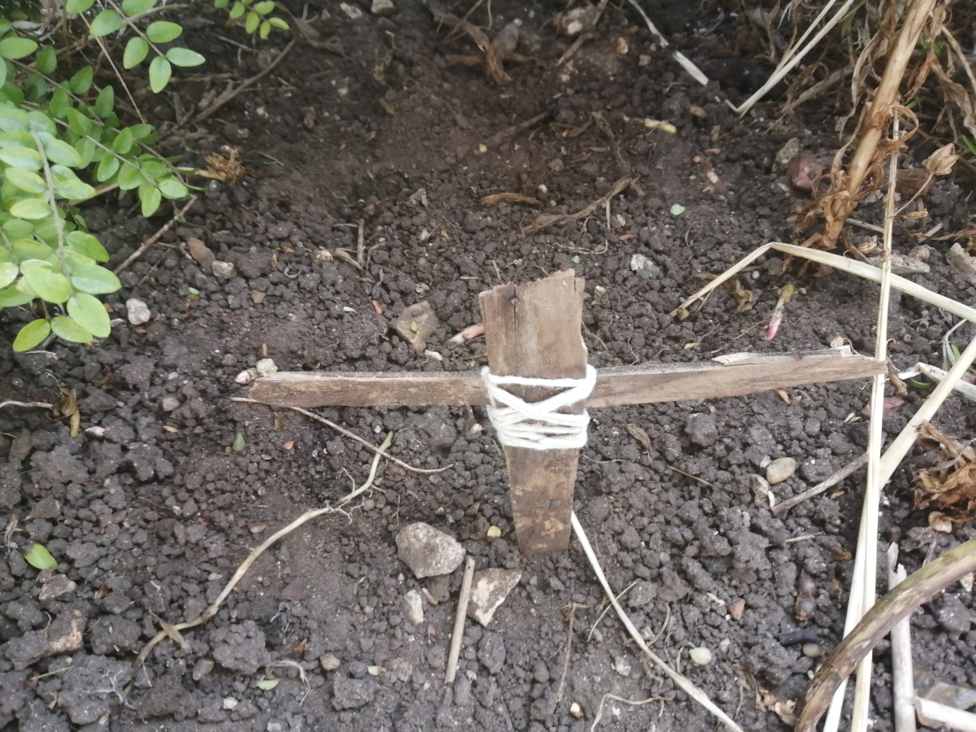 Then Tim offered it to bury it and used some twine for the cross you see.