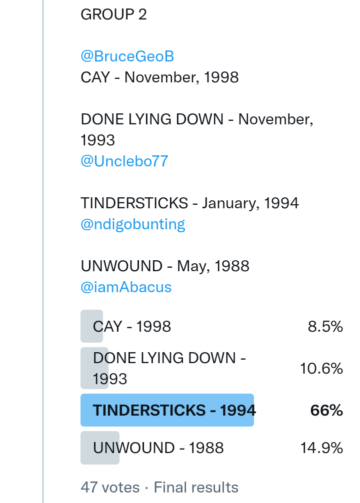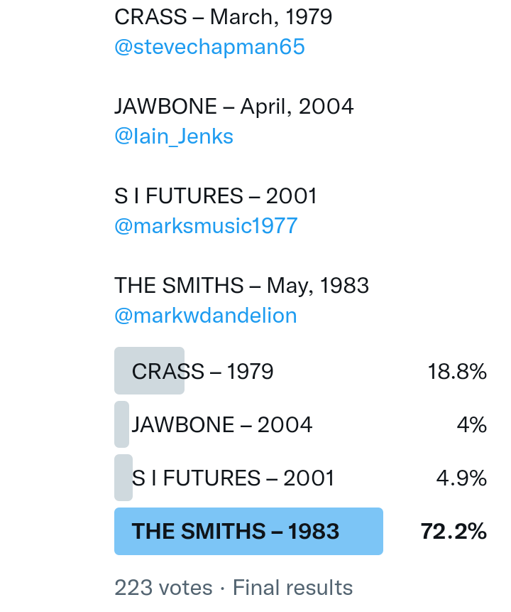 While I’m thrilled to see some sanity in I Know It’s Over being third ‘best’ – two instrumentals are suddenly better than Well I Wonder? Cemetery Gates as high as eleven? Even Back To The Old House has suffered, personally that would make it into my top twenty-five.