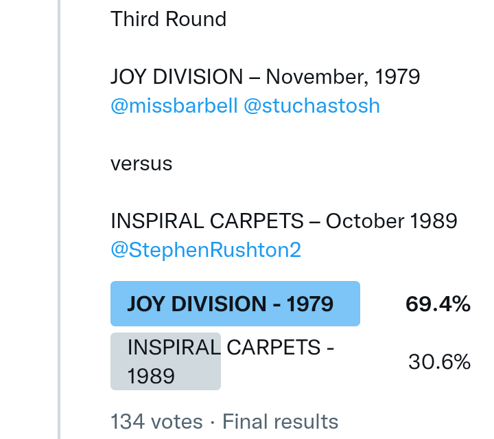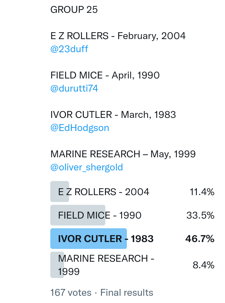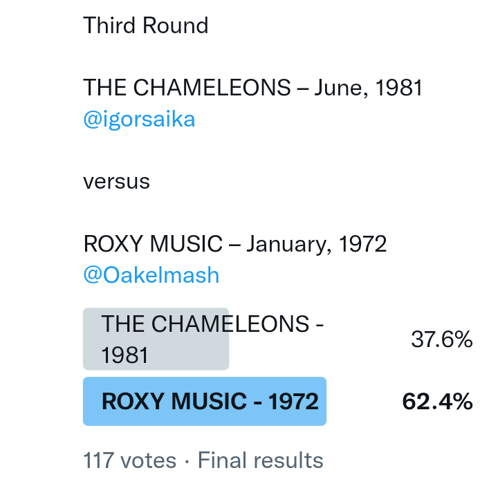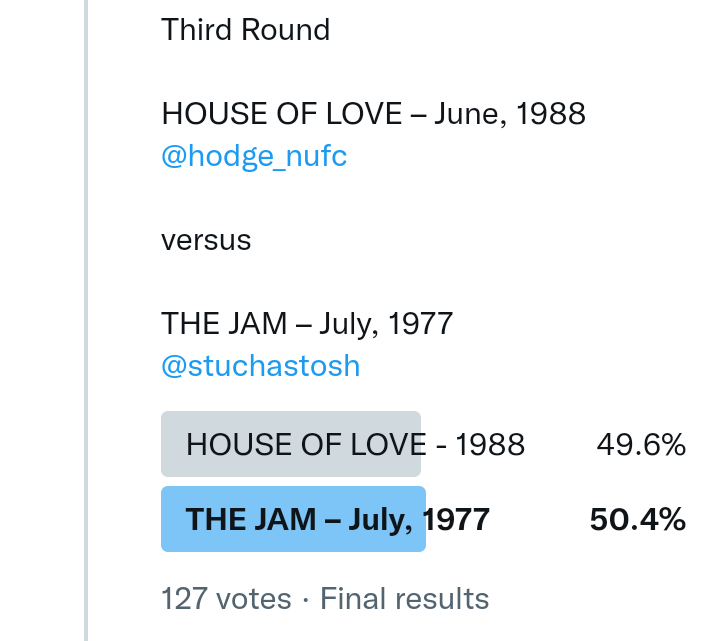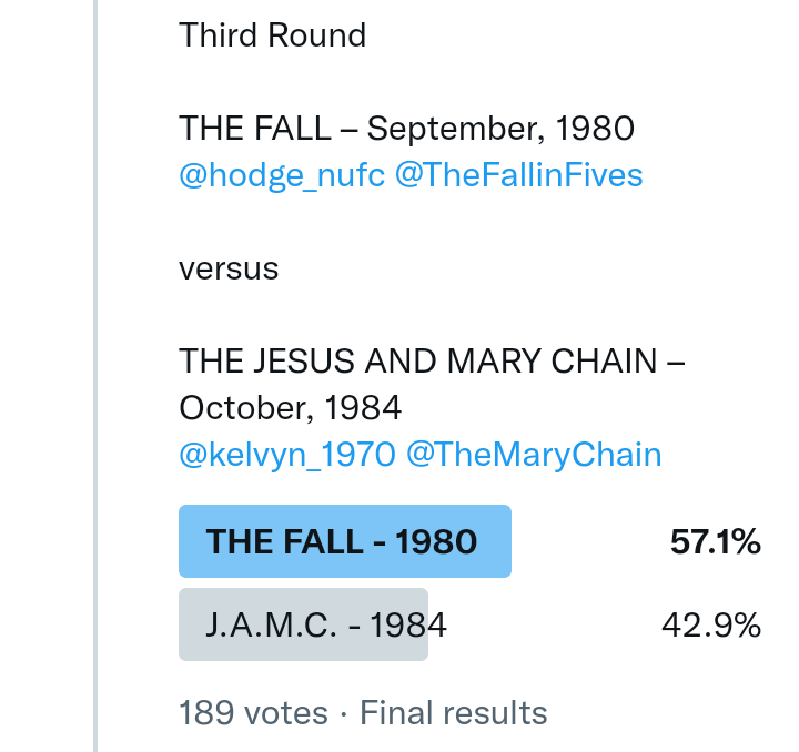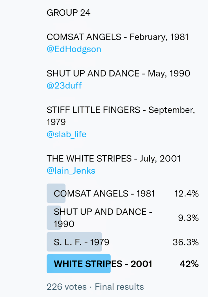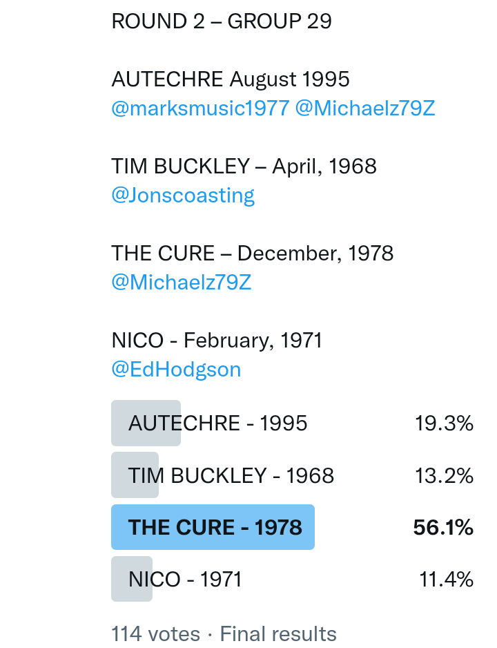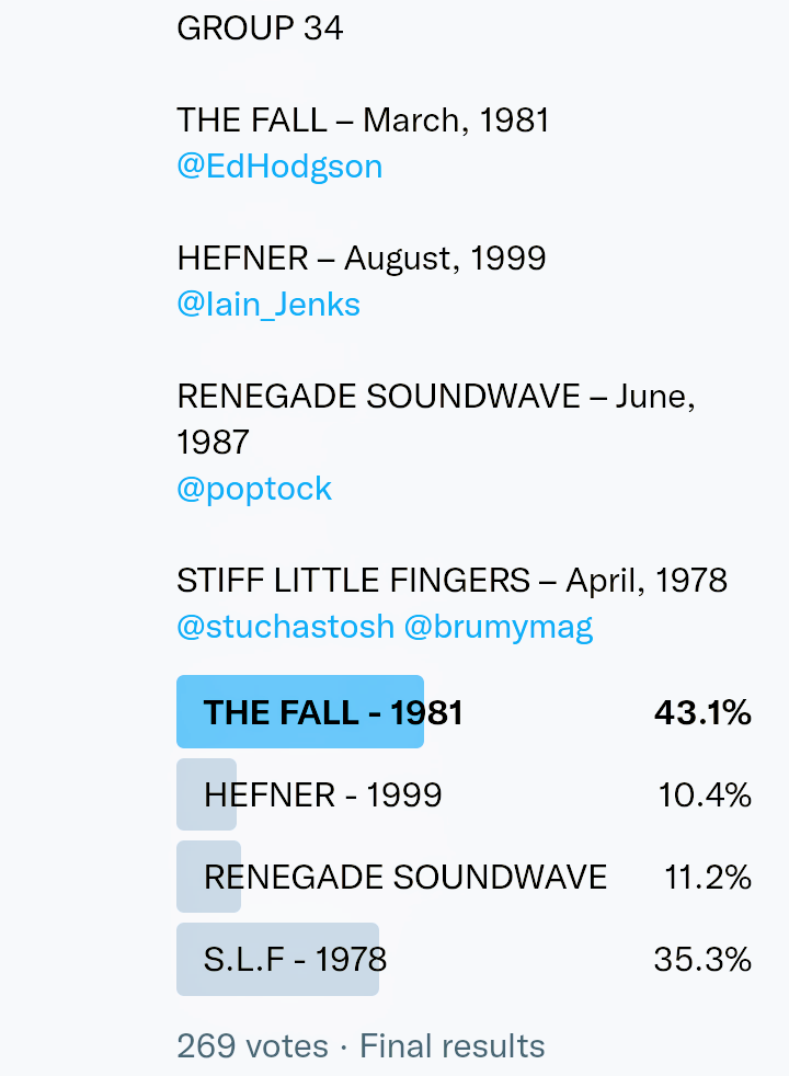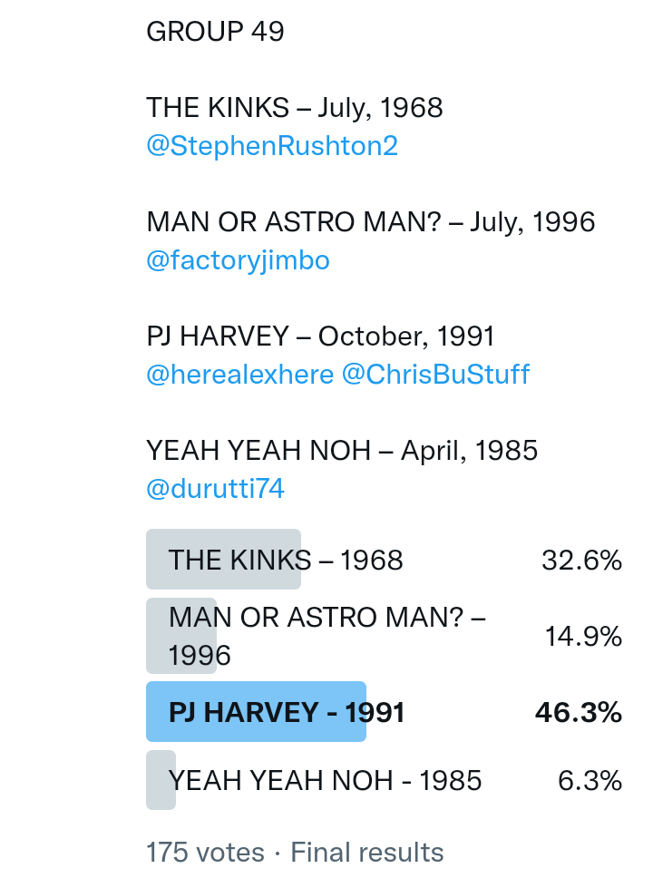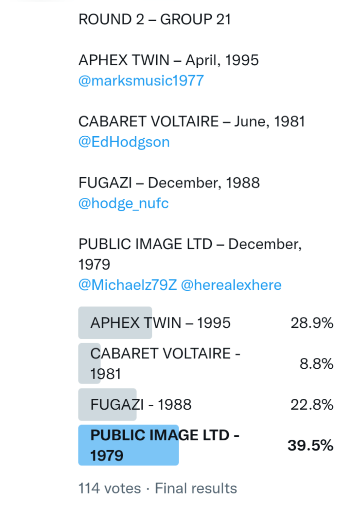 And so after much a to-ing and a fro-ing which included duplications and protestations and then affirmations amid the Bauhaus conspiracy where they appeared to sail into round three without actually doing very much, I now issue forth the THIRD ROUND DRAW for #FavePeelSession (minus Bauhaus) from which you will see some mouth-watering battles ahead.