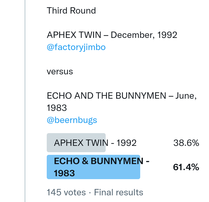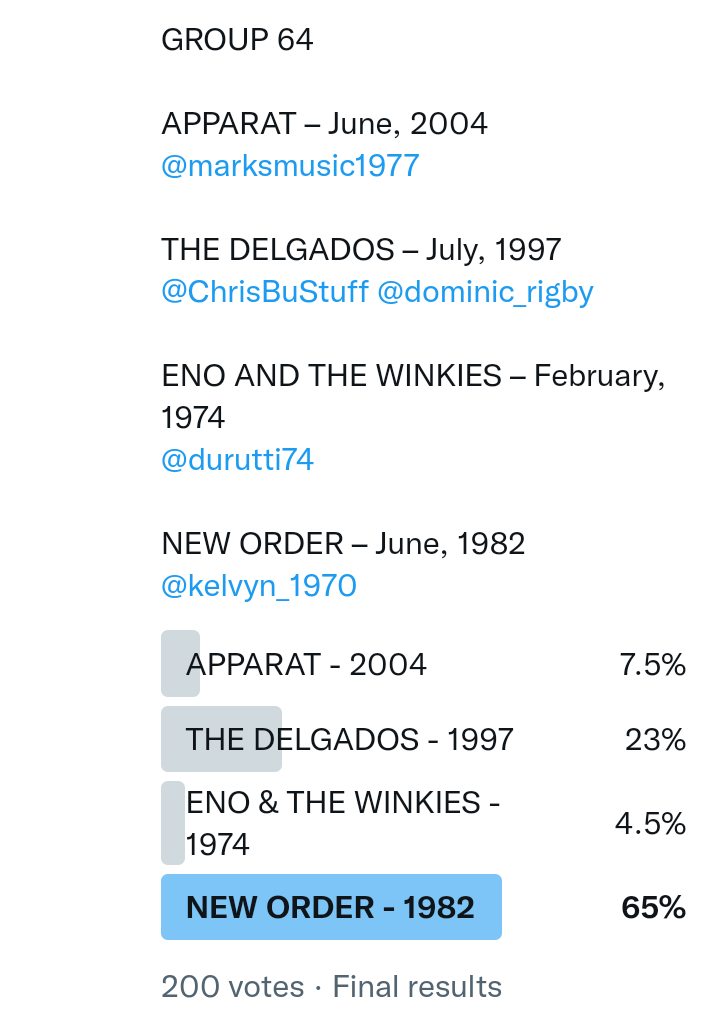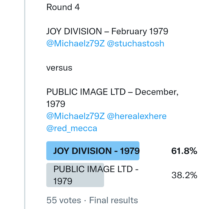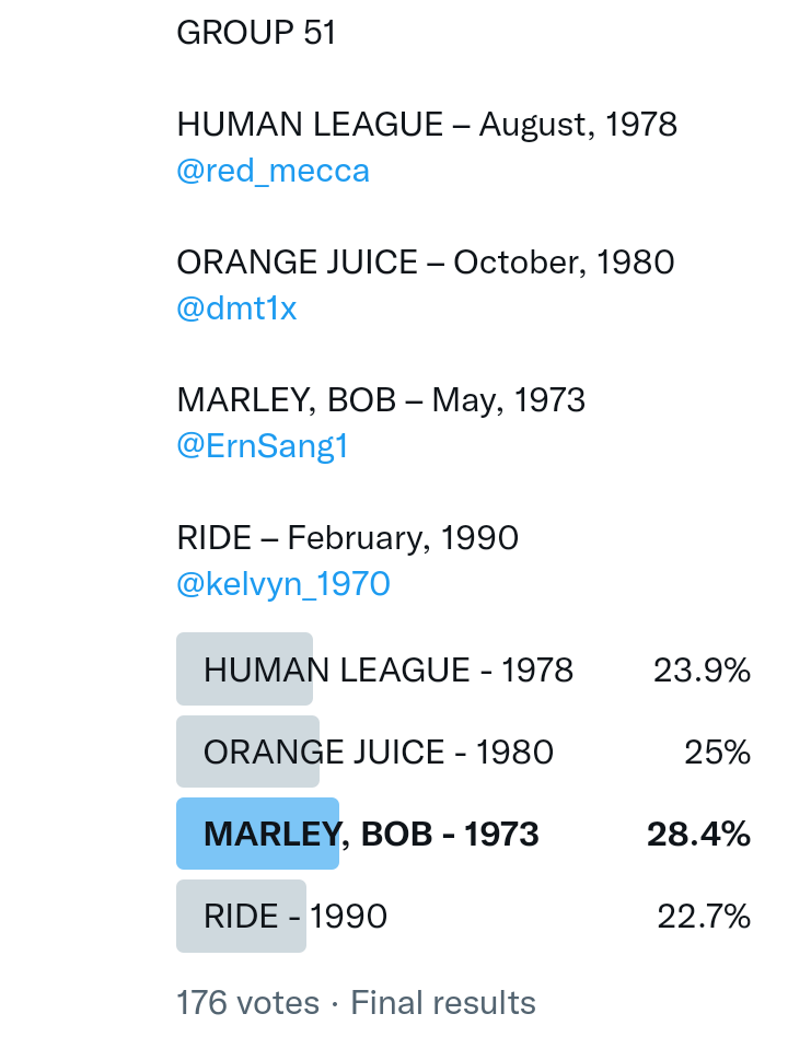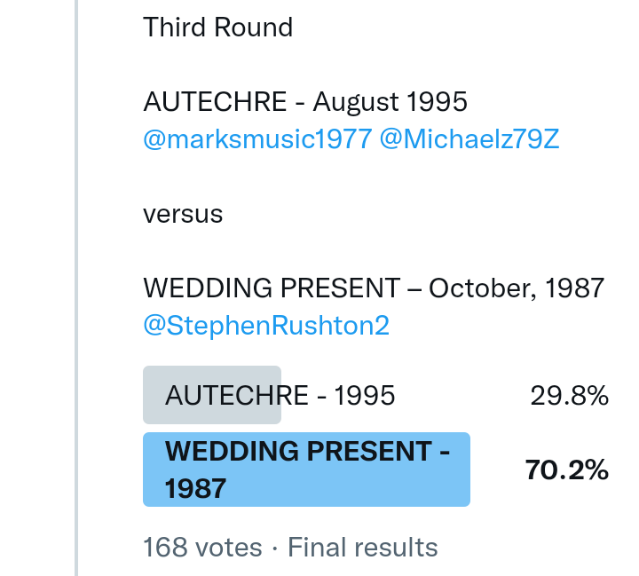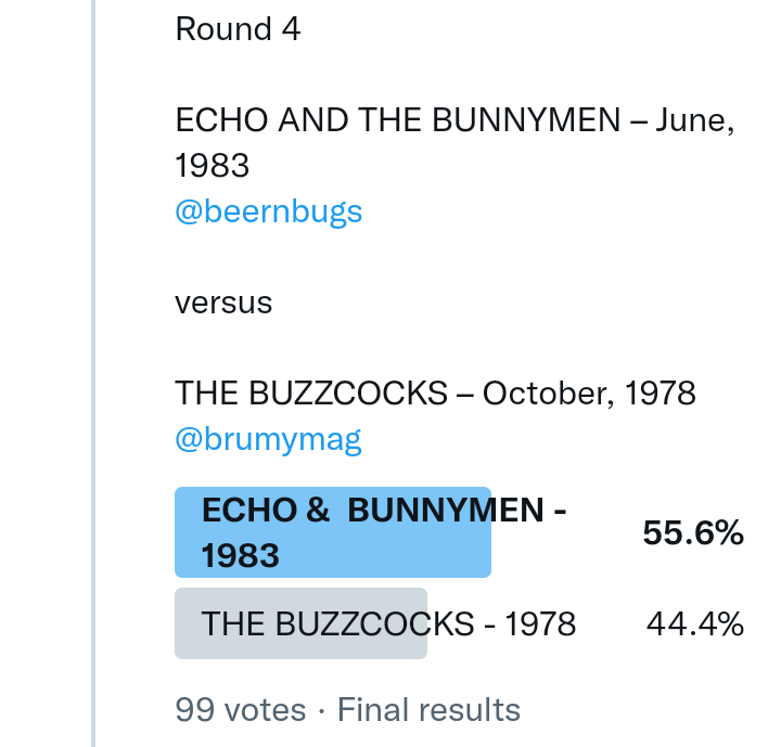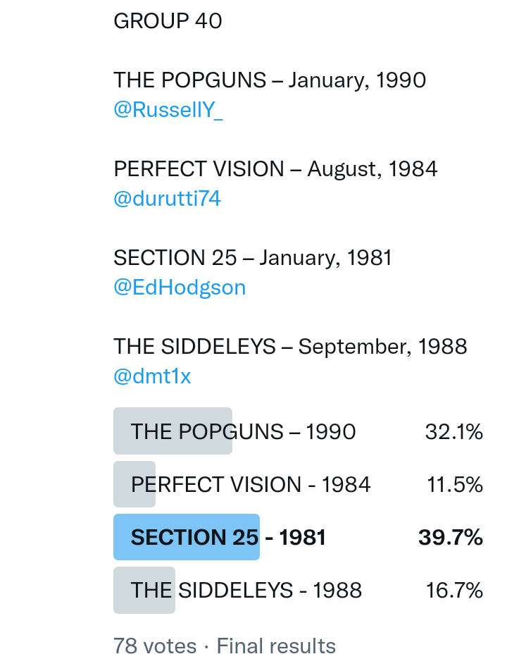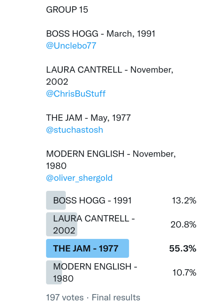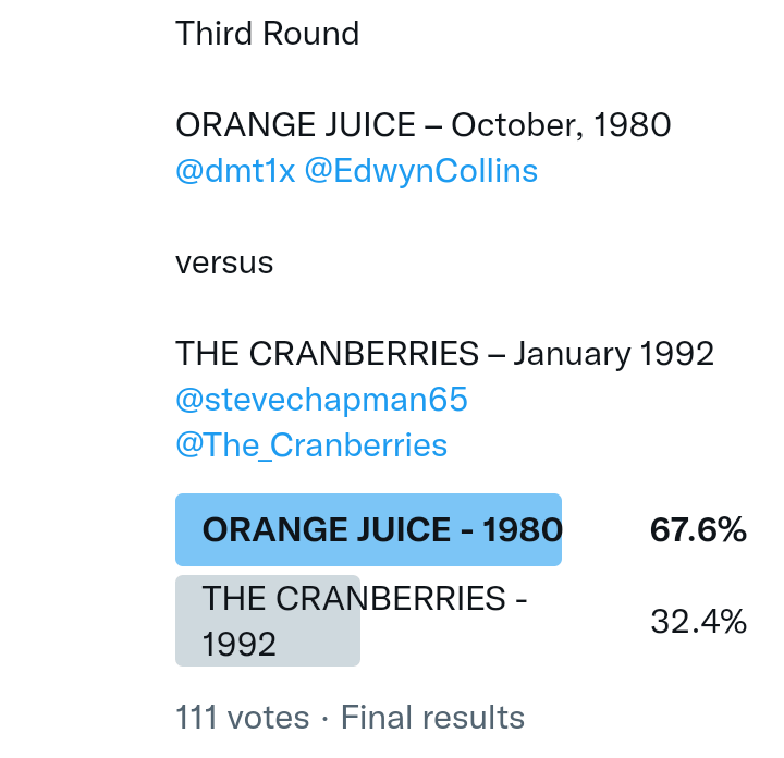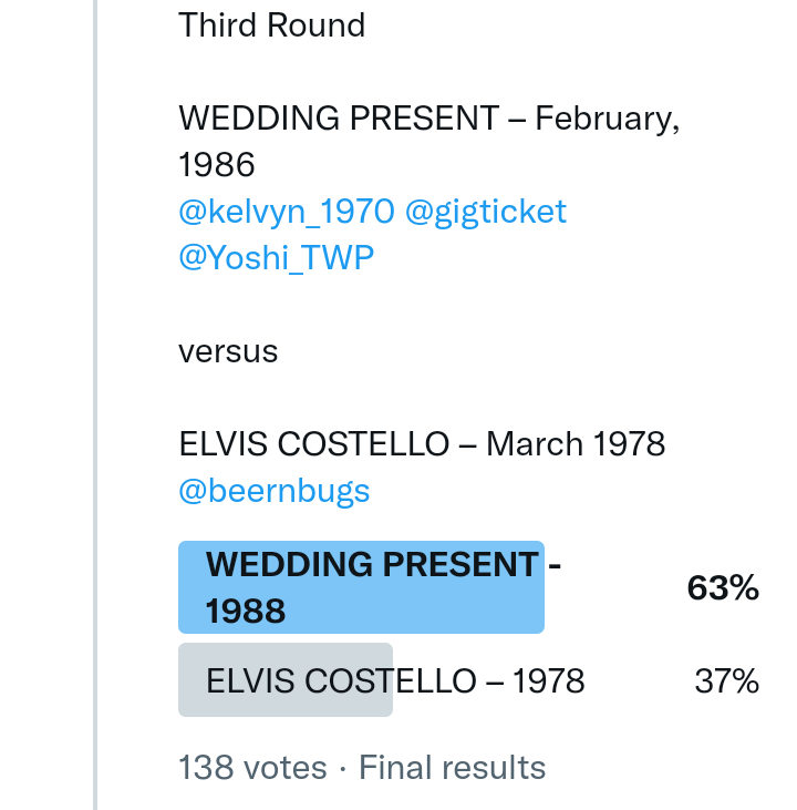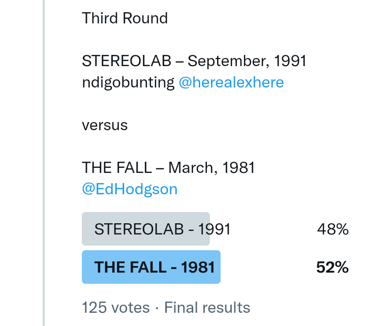 And so after much a to-ing and a fro-ing which included duplications and protestations and then affirmations amid the Bauhaus conspiracy where they appeared to sail into round three without actually doing very much, I now issue forth the THIRD ROUND DRAW for #FavePeelSession (minus Bauhaus) from which you will see some mouth-watering battles ahead.