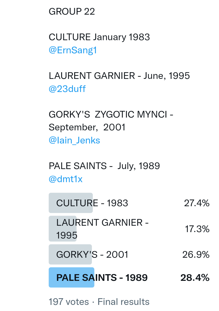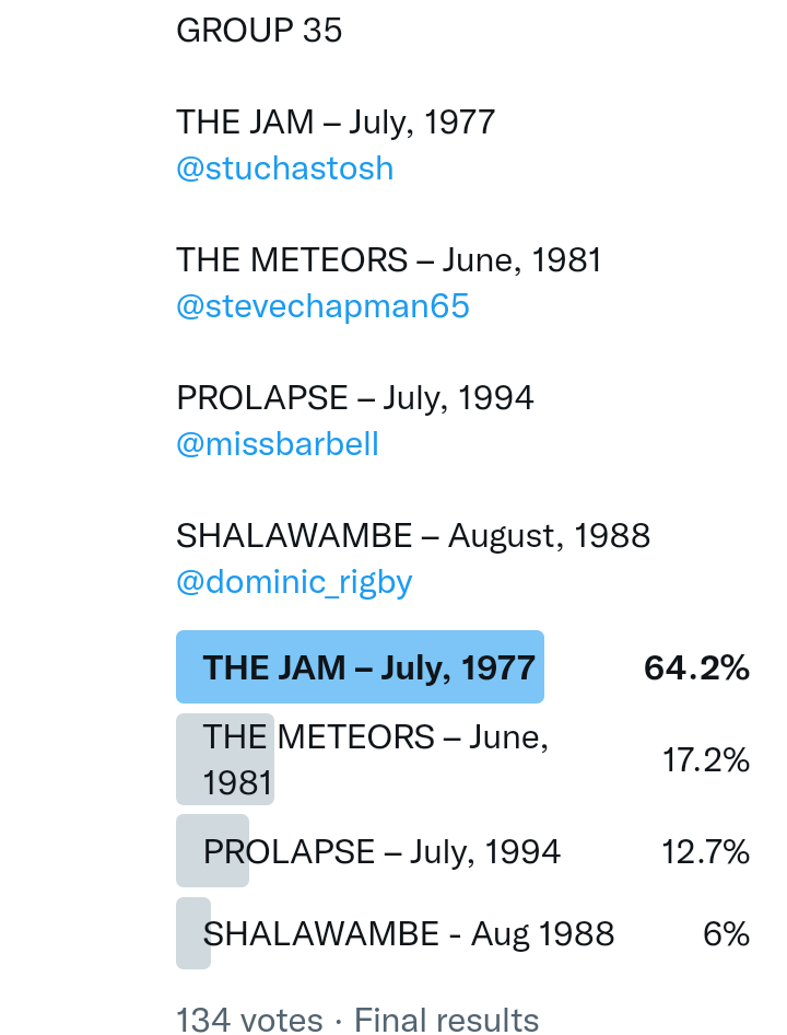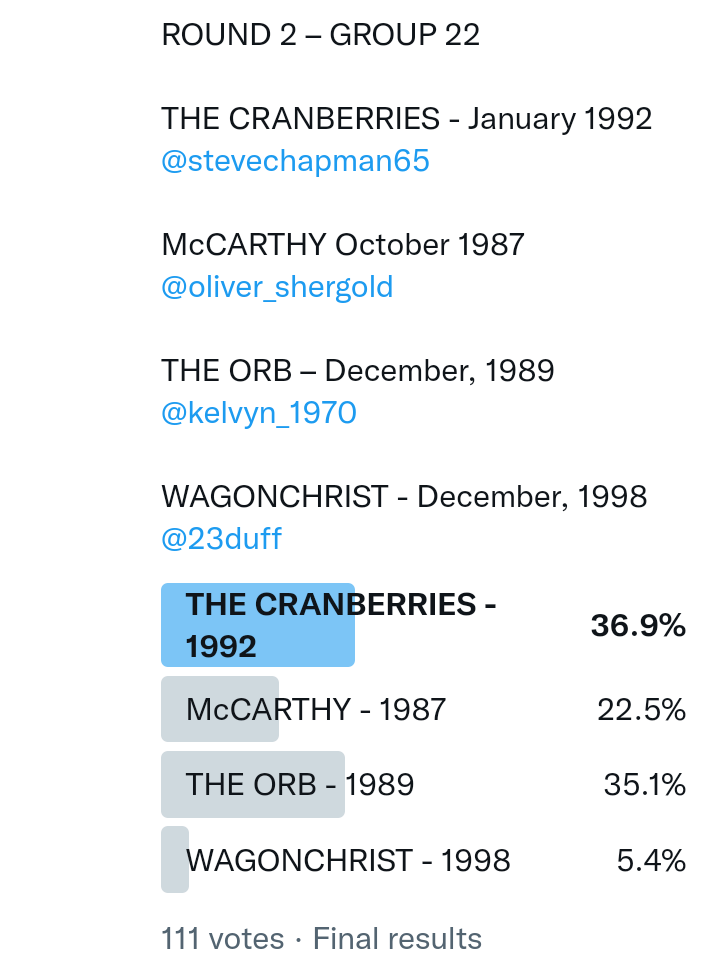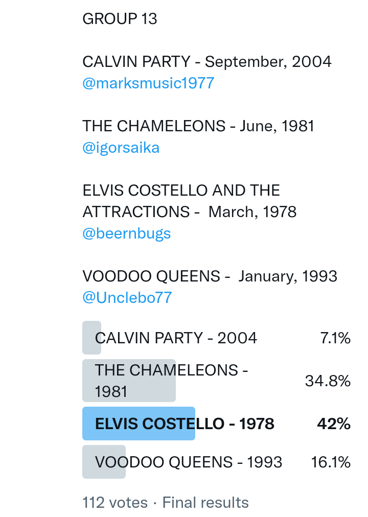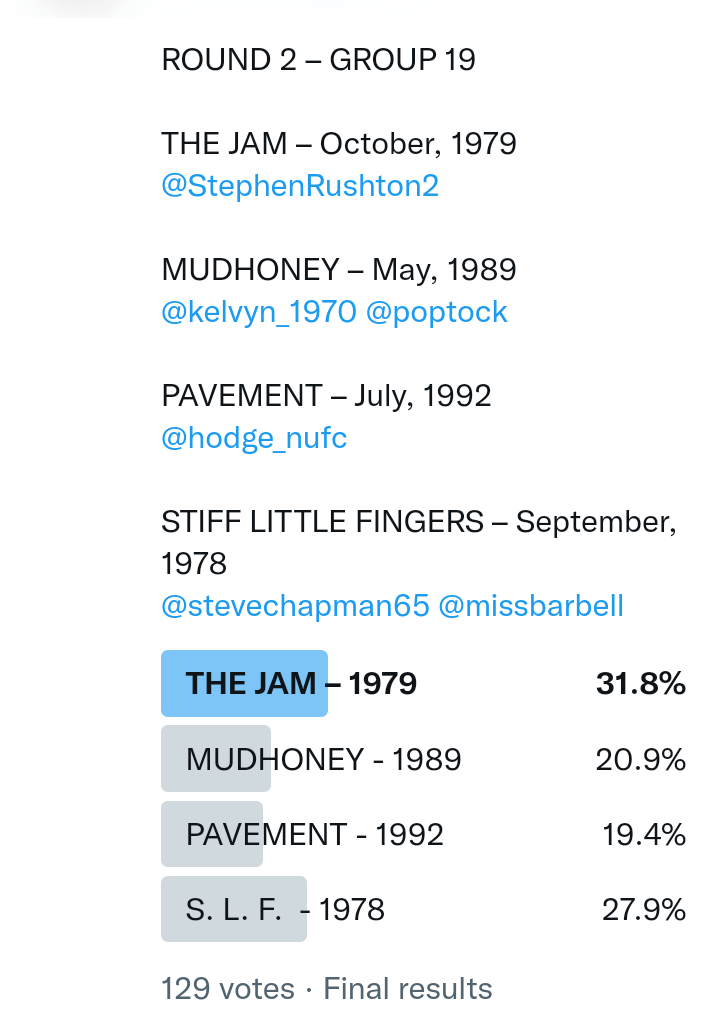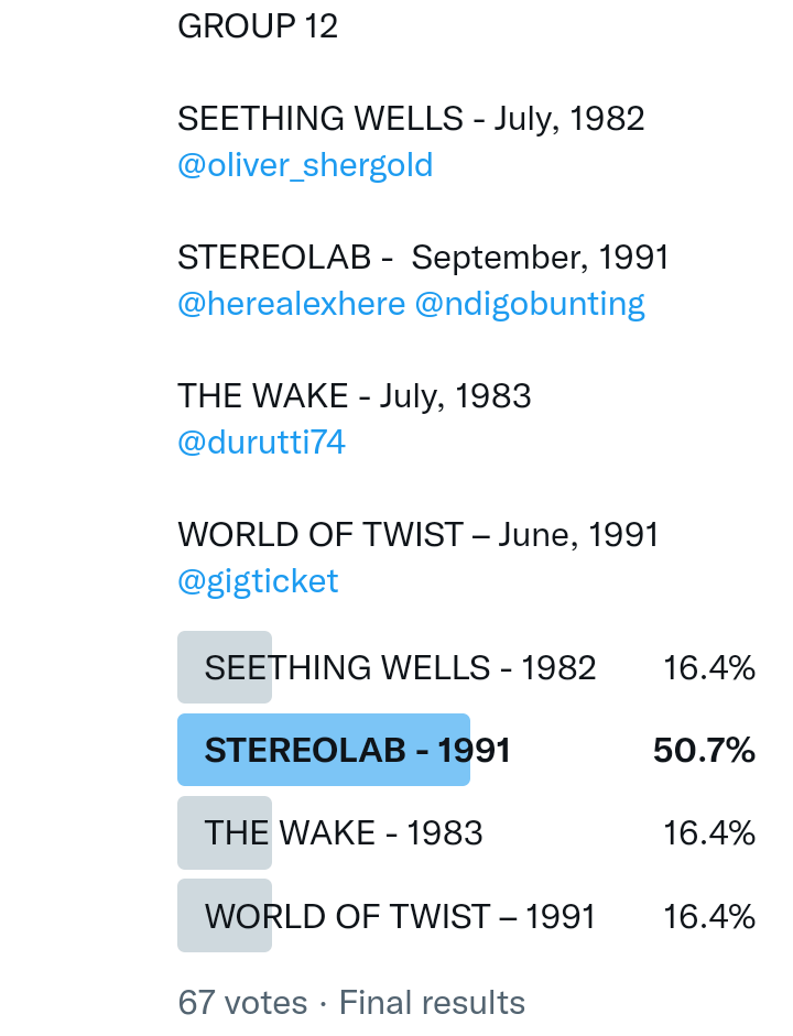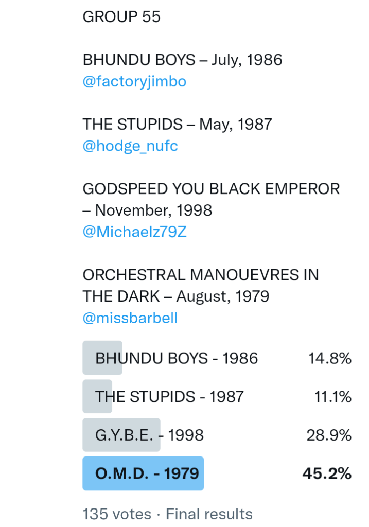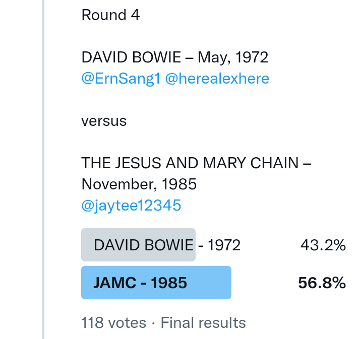 And so after much a to-ing and a fro-ing which included duplications and protestations and then affirmations amid the Bauhaus conspiracy where they appeared to sail into round three without actually doing very much, I now issue forth the THIRD ROUND DRAW for #FavePeelSession (minus Bauhaus) from which you will see some mouth-watering battles ahead.