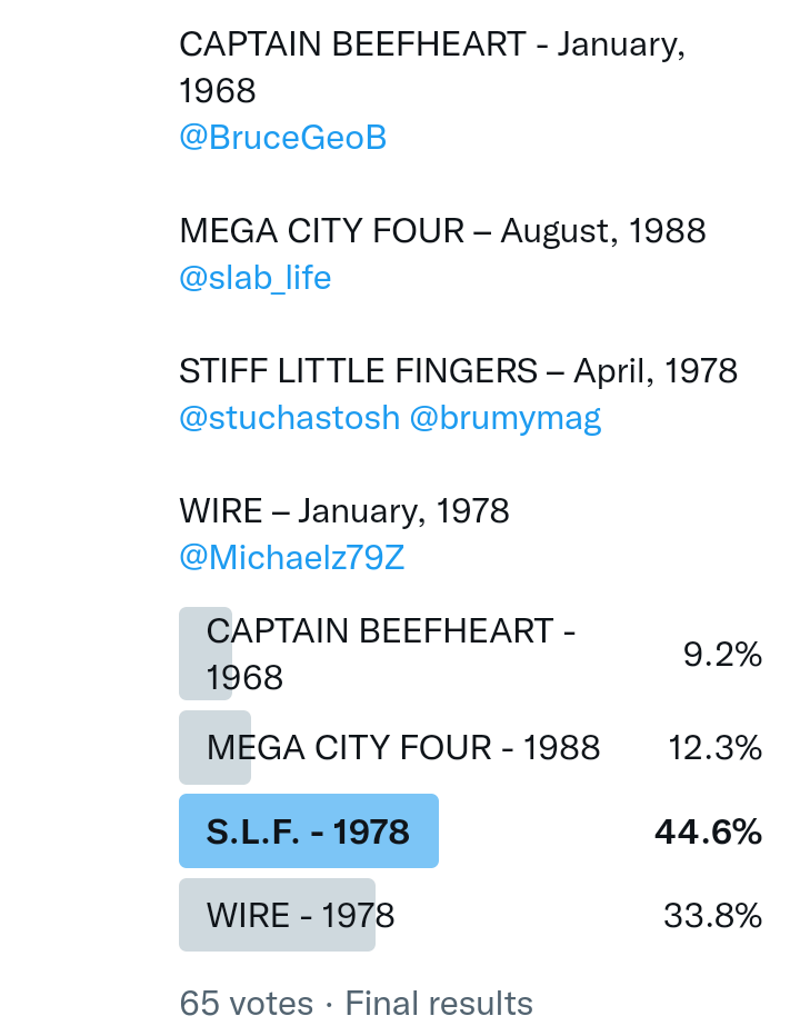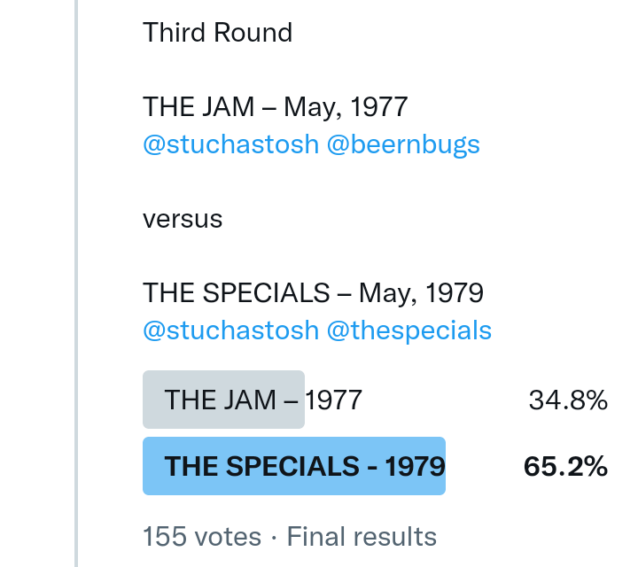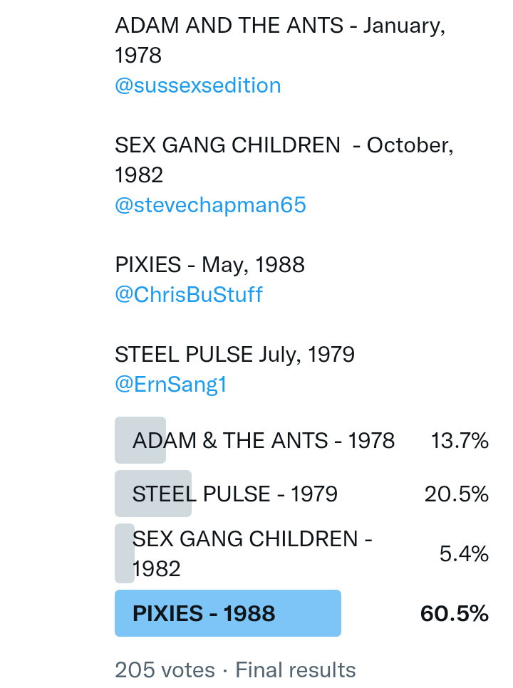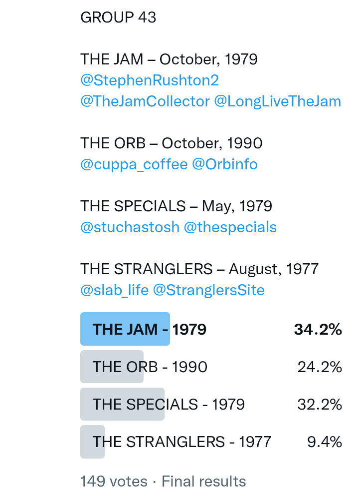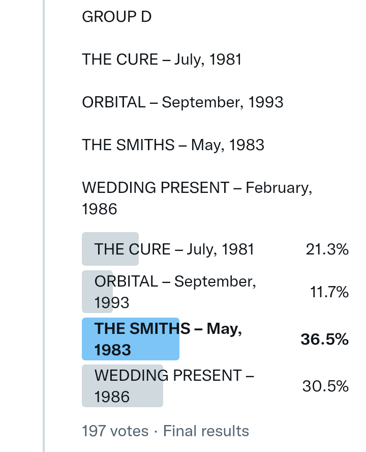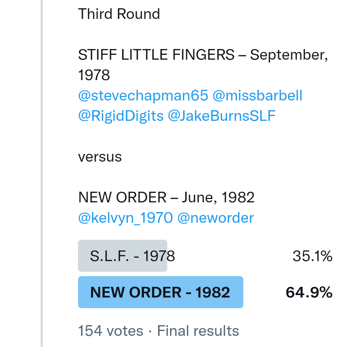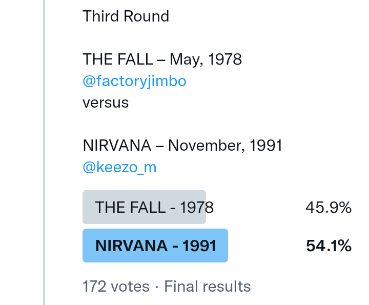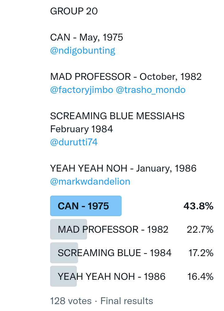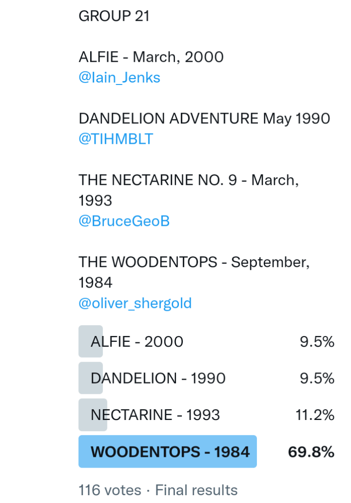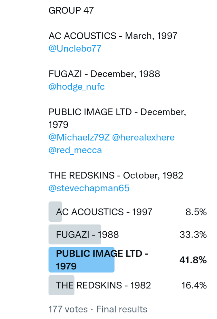 And so after much a to-ing and a fro-ing which included duplications and protestations and then affirmations amid the Bauhaus conspiracy where they appeared to sail into round three without actually doing very much, I now issue forth the THIRD ROUND DRAW for #FavePeelSession (minus Bauhaus) from which you will see some mouth-watering battles ahead.