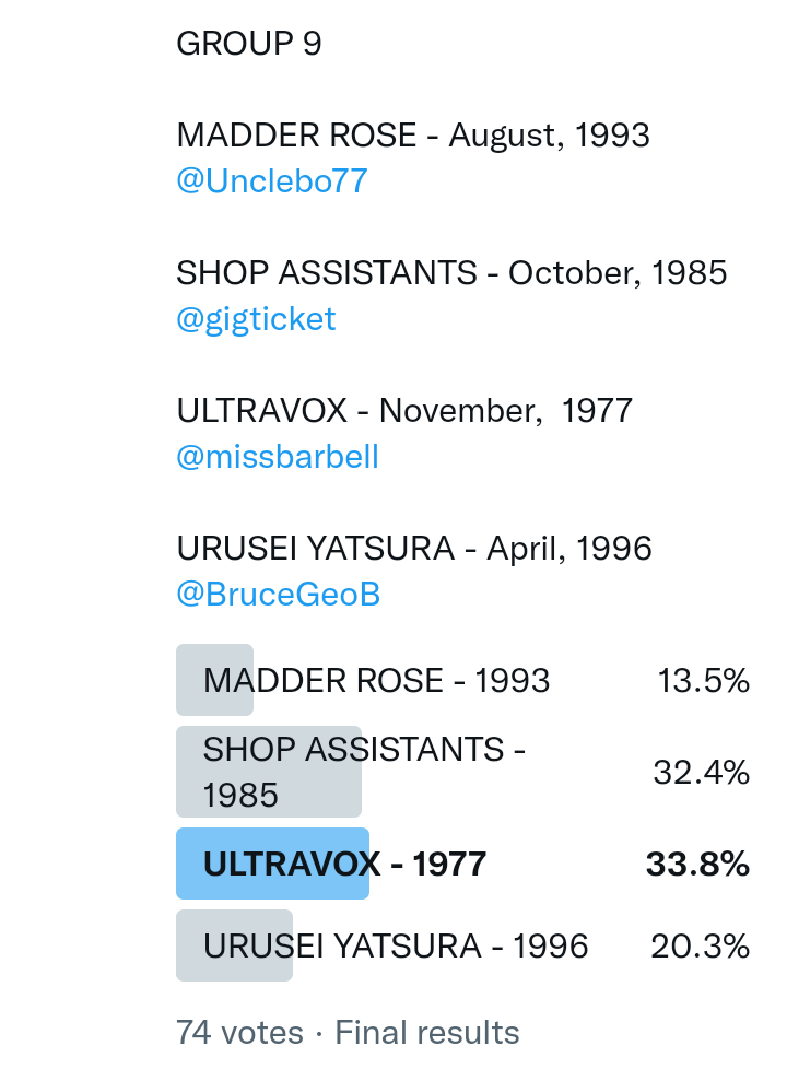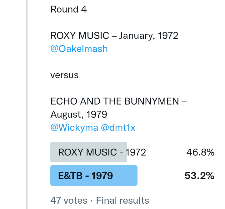 There wasn’t time for a play-off and so in the end I just put Roxy Music into the hat before things got any more complicated.